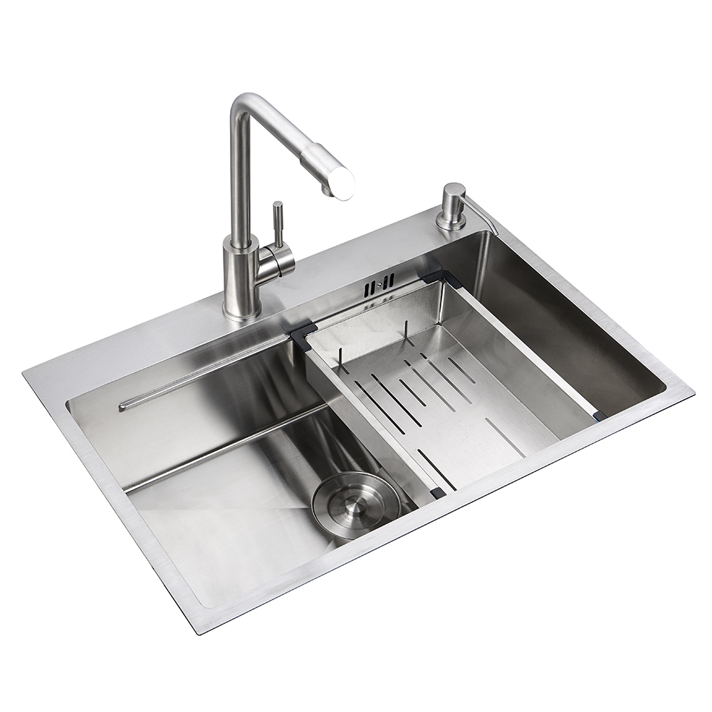 Ⅲ.Superficie del fregadero cepillada protegida con revestimiento Nano;Antiarañazos y resistente al desgaste. Más duro que el fregadero ordinario.