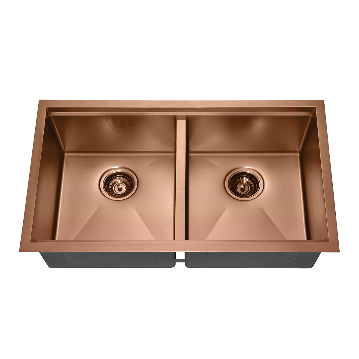 Fregadero de cocina de doble cubeta de acero inoxidable de oro rosa con repisa